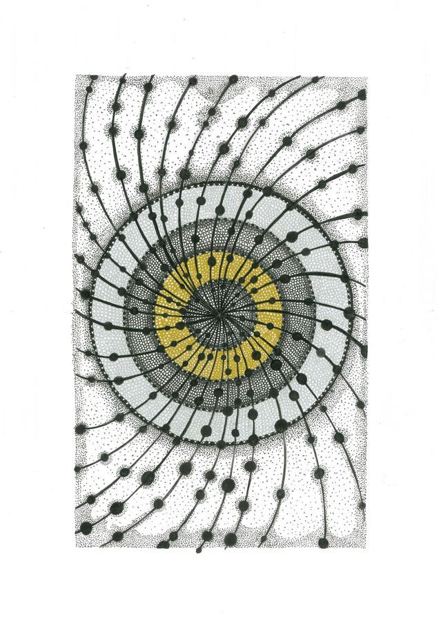 L’œuvre « Spirale Solaire » n’est pas qu’un simple dessin ; c’est une invitation à la contemplation. Chaque point a été placé avec soin pour créer une dynamique de mouvement qui semble sortir du cadre.