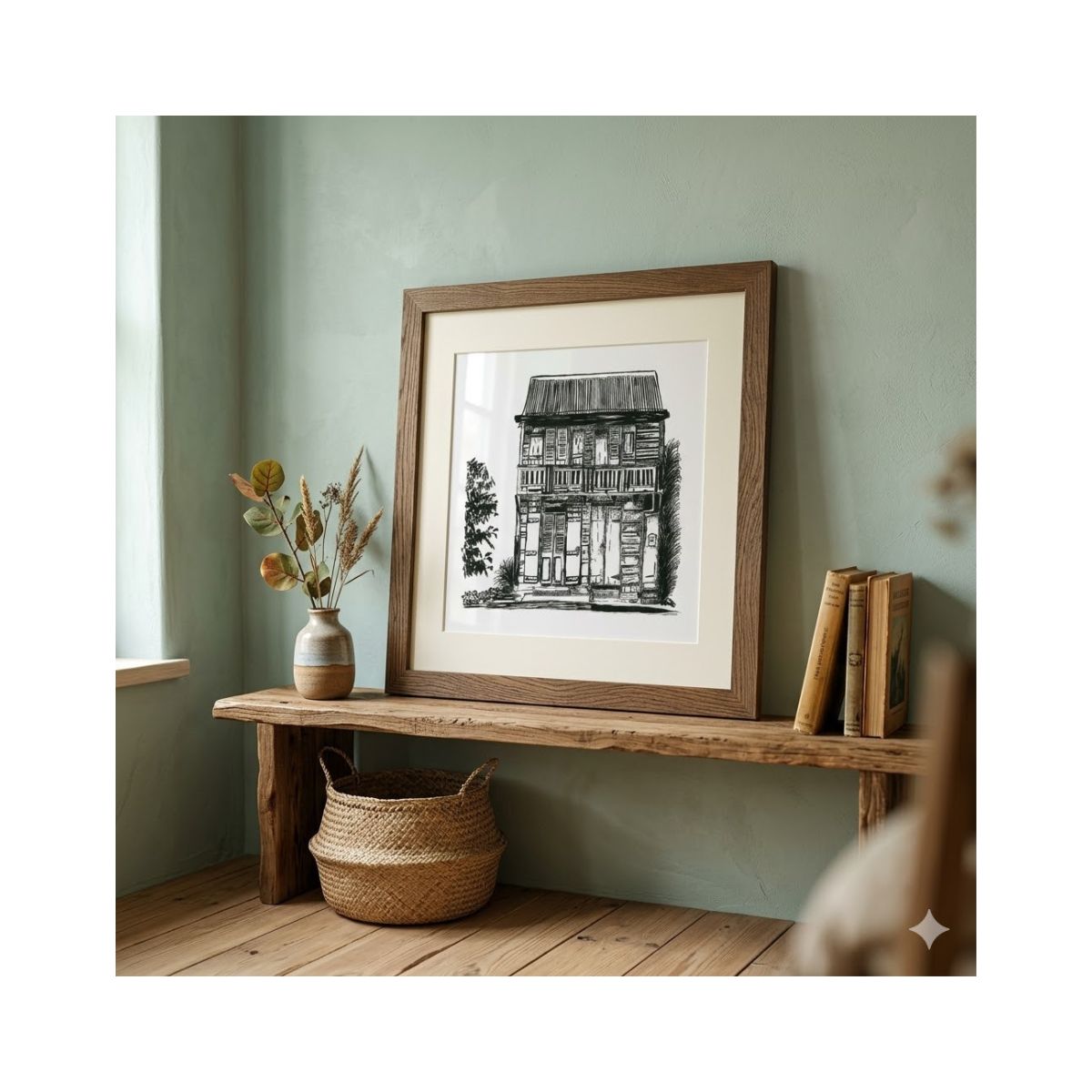 Celles qui ont du caractère, avec leur toit en tôle ondulée, leurs grands volets en bois et leur façade qui raconte des années d’histoire. C’est exactement ce que j’ai voulu capturer dans ce dessin.